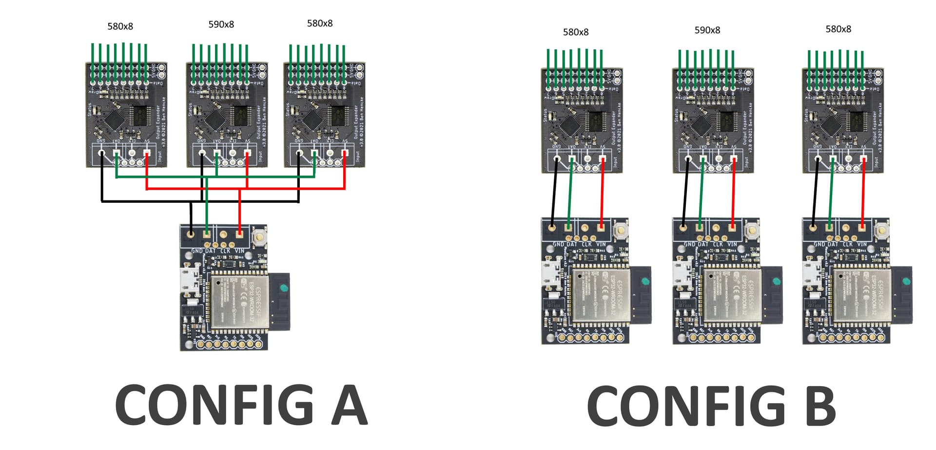 For scaling up to larger installs like this, I would recommend adding more Pixelblazes in a sync group over adding output expanders. Assuming WS2812 data, you will be limited to around 33K pixels/sec per Pixelblaze without an output expander due to the data rate of the LEDs. If around 33 FPS is OK, you could run 1000 pixels per PB, or around 500 if you wanted 66 FPS. With 590 pixels, 56 FPS will look good.