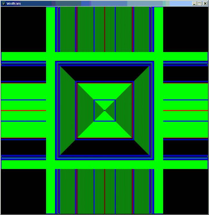 And while cellular automata (which all of this is) does have a 1D pattern in the PB pattern archive… its time for some 2D ones… cause with some additional/different rules and adding colors, you can make amazing patterns like this: