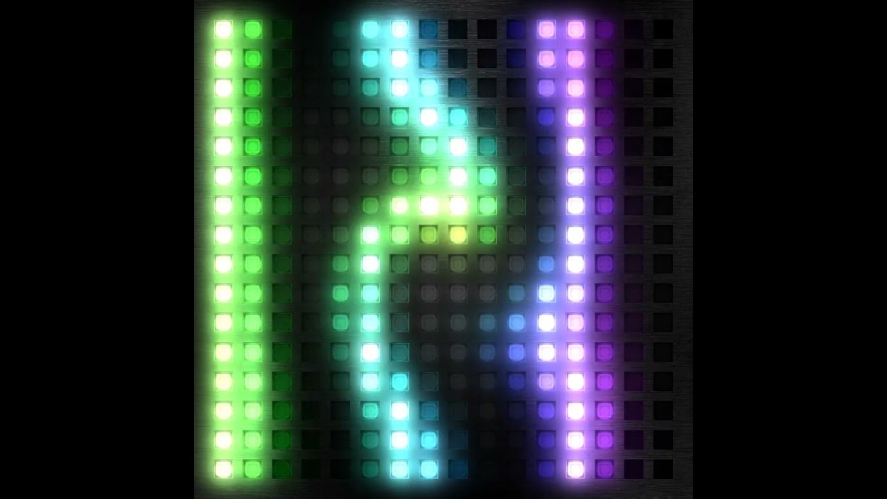 A tiny bit of per-LED instanced geometry. Just a flattened cube with a lighter color circle drawn on the top. The LED object’s material is set to be emissive, with maximum shininess, and a bright white specular color. This let me take advantage of Processing’s built-in lighting to produce the “bloom” effect that simulates a slightly oversaturated camera.